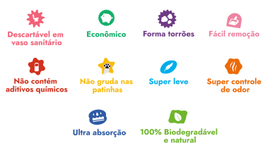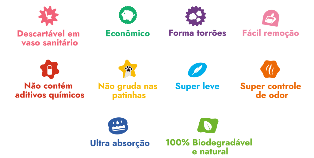 Combina a excelência da bentonita com a leveza e sustentabilidade da celulose, criando uma solução tão eficiente quanto inovadora. Com apenas 2,5kg, ela oferece o mesmo volume e rendimento de 4kg de bentonita pura.